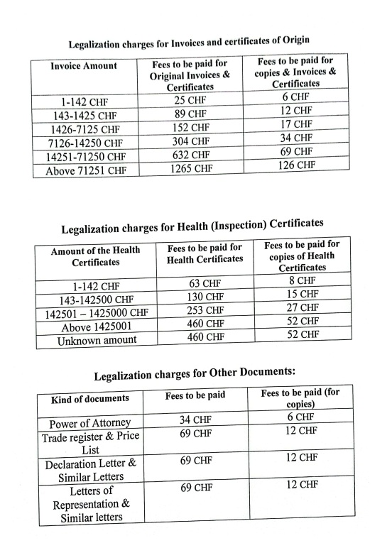 In case the invoice lacks the total cost of goods, or the request for Legalization of certificate of origin and Health certificate lacks the bill/invoice, according to the regulations, the maximum fee listed in the tariffs of the consulate will be demanded from the applicant of the legalization process.